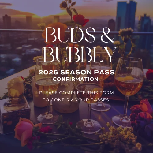 Prior to every event you will receive a text/email from Buds & Bubbly with a code to redeem your complimentary ticket(s).